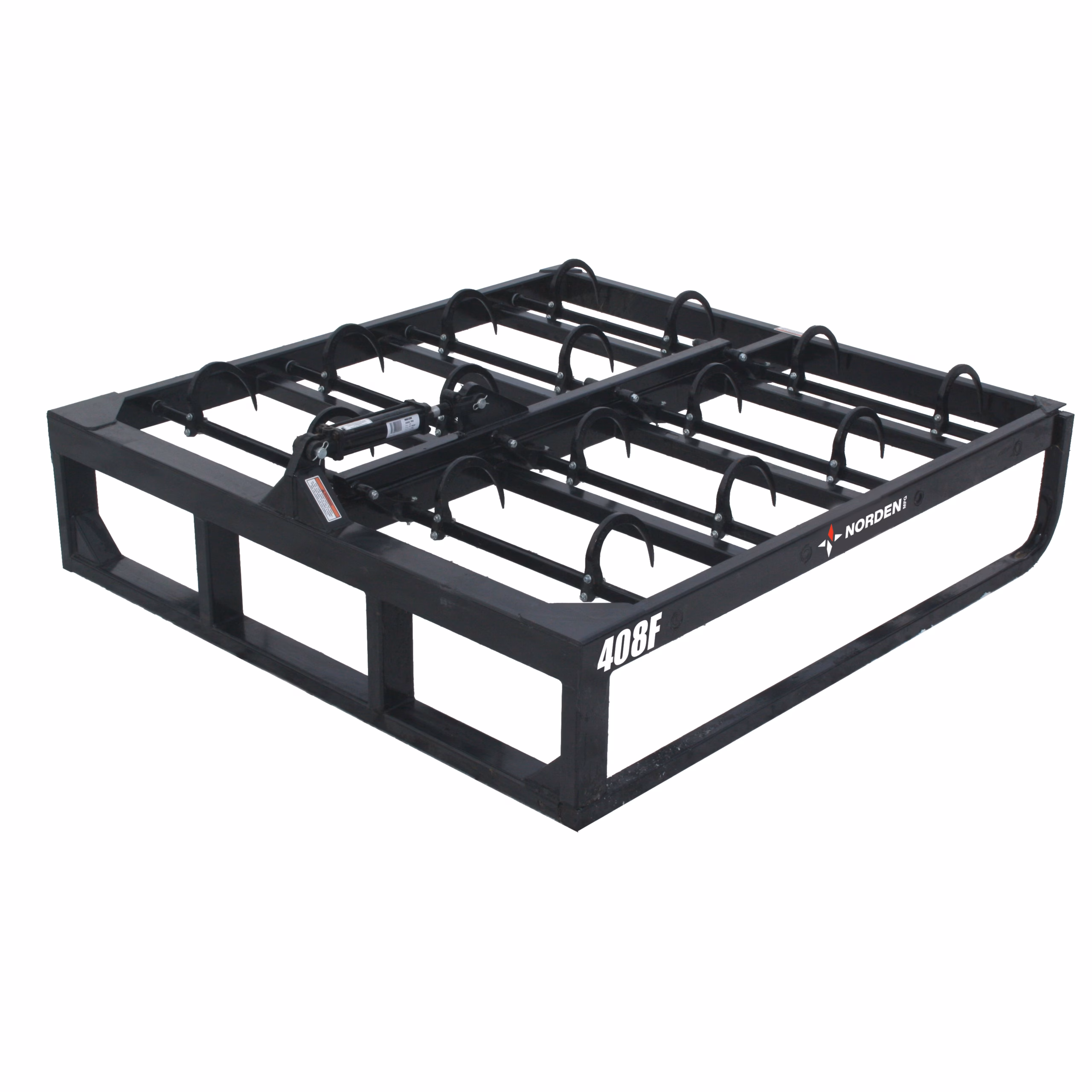 Once the group is tight, a single hydraulic cylinder rotates all the hooks simultaneously into the top of the bales to pick up the group. These durable hooks allow for 2 hooks per bale to ensure the bundle is secure while transporting bundles.